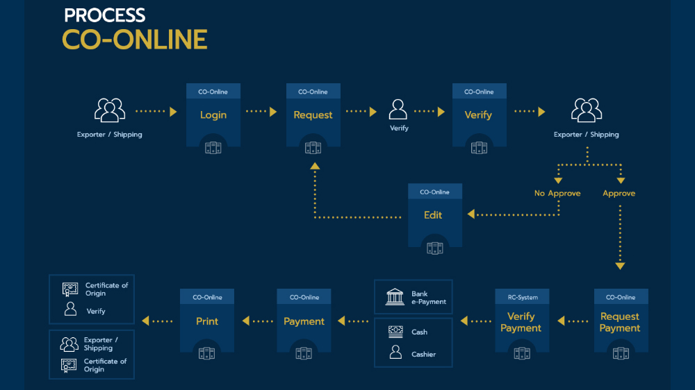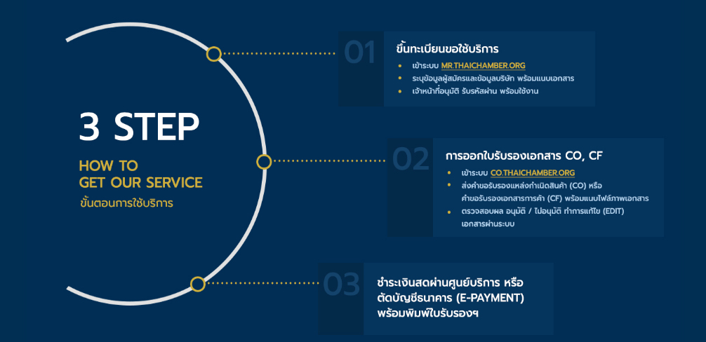 เราสามารถขอหนังสือรับรองแหล่งกำเนิดสินค้าแบบ"ปกติ" (ไม่มีสิทธิพิเศษทางภาษีศุลกากร) จาก หอการค้าไทย โดยใช้ระบบ CO Online บนเทคโนโลยี Cloud System ที่ทันสมัย โดยมีขั้นตอนดังต่อไปนี้- ขึ้นทะเบียนขอใช้บริการ: